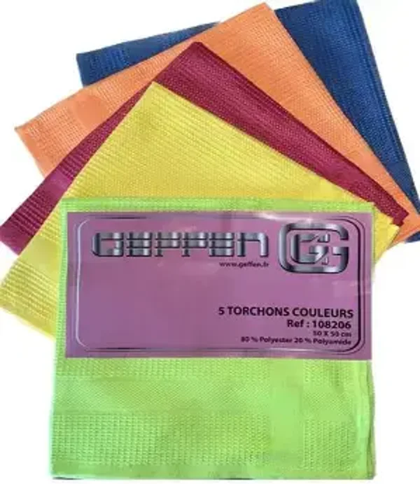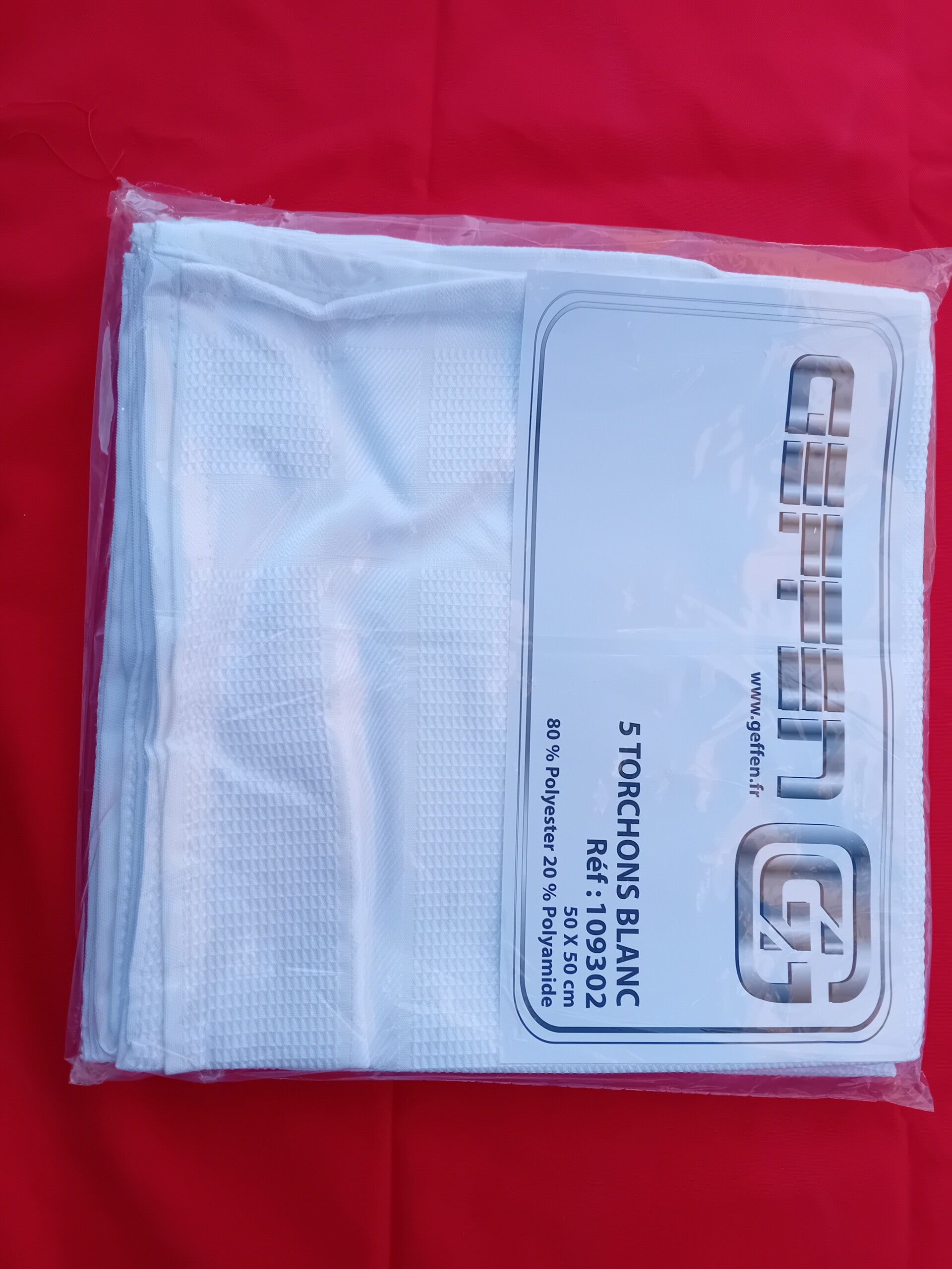 5 Torchons GEFFEN, microfibres, blanc, nid d'abeille, 50 x 50 cm, composition 80% polyester 20% polyamide, poids 300 gr